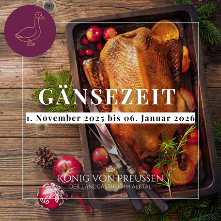 Von Anfang November bis Heilige Drei Könige (6. Januar) servieren wir Ihnen unsere klassischen Gänsespezialitäten: