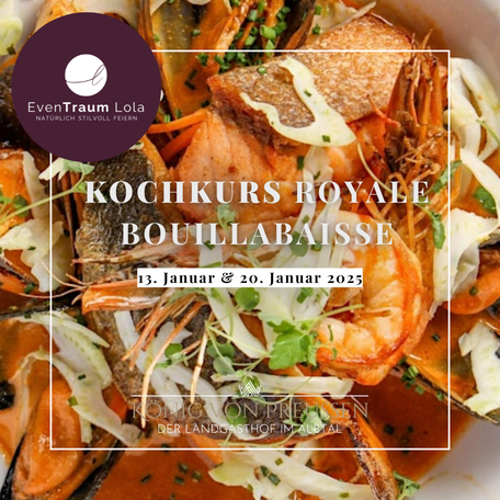 Der Kochkurs wird begleitet von ausgewählten Weinen & antialkoholischen Alternativen, welche den gesamten Abend zur Verfügung stehen. Nach der Arbeit kommt das Vergnügen – in gemütlicher Runde genießen wir gemeinsam die zubereitete Bouillabaisse!