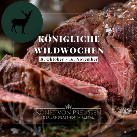 Erleben Sie bei uns den unvergleichlichen Geschmack der heimischen Wildküche. Während der Wildwochen verwöhnen wir Sie dauerhaft mit mindestens drei ausgewählten Wildgerichten, sowie unser exklusives 4-Gang-Wildmenü 🍷 – klassische Rezepte, modern interpretiert.